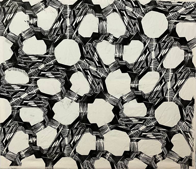 Ducts and Illusions #5 is a linocut block print that explores the intricate interplay of air ducts and impossible figures. Using a new printing technique that emphasizes negative space and interconnections between block impressions, this work expands on Escher's use of tessellation to create mesmeri...