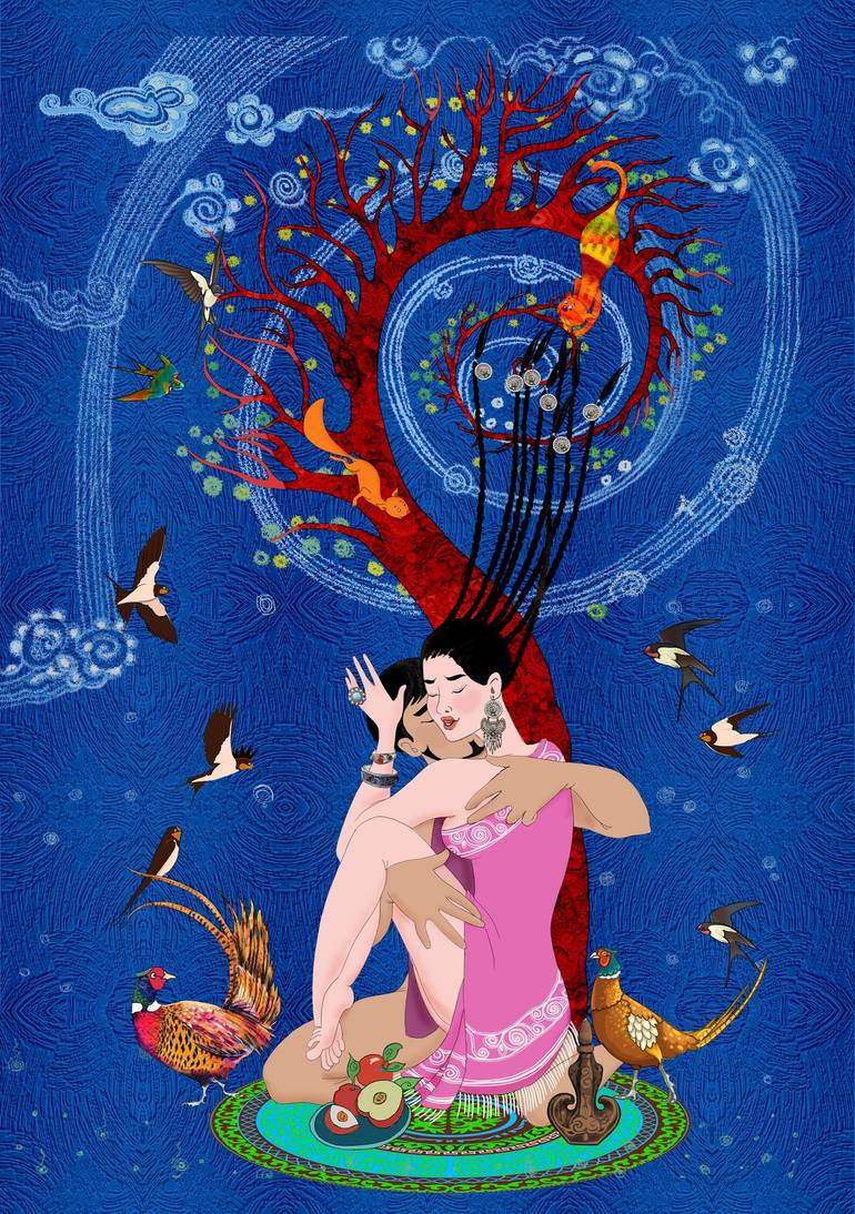 My journey to the world of art started while studying miniature style at Kazakh College of Arts. I love painting human's passion, attraction and feelings. Physical flexibility inspired me to create this work infusing flora and fauna theme. I hope, viewers will feel overwhelmed with the beauty of fee...