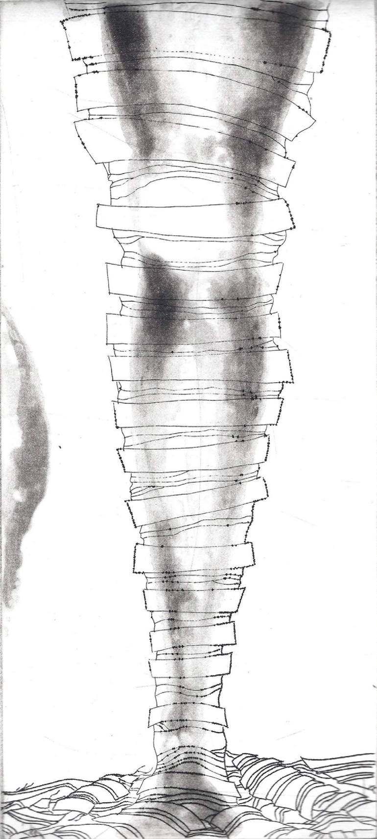 A hand-pulled etching with aquatint on white archival paper Rives BFK. Image size: 9 x 5 inches, paper size: 15 x 9 inches. Edition of 8. Signed, editioned and dated by the artist in pencil on the front, below the image.