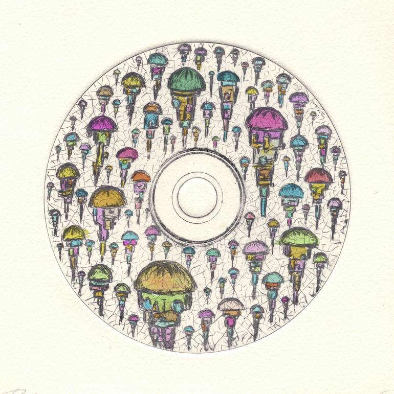 This engraving has the peculiarity, novelty and originality of having been made using a plate or a compact disc (CD). The technique used is that of the dry point, which allows showing all its expressive and aesthetic content through the lines of different trajectories and movements that give this wo...