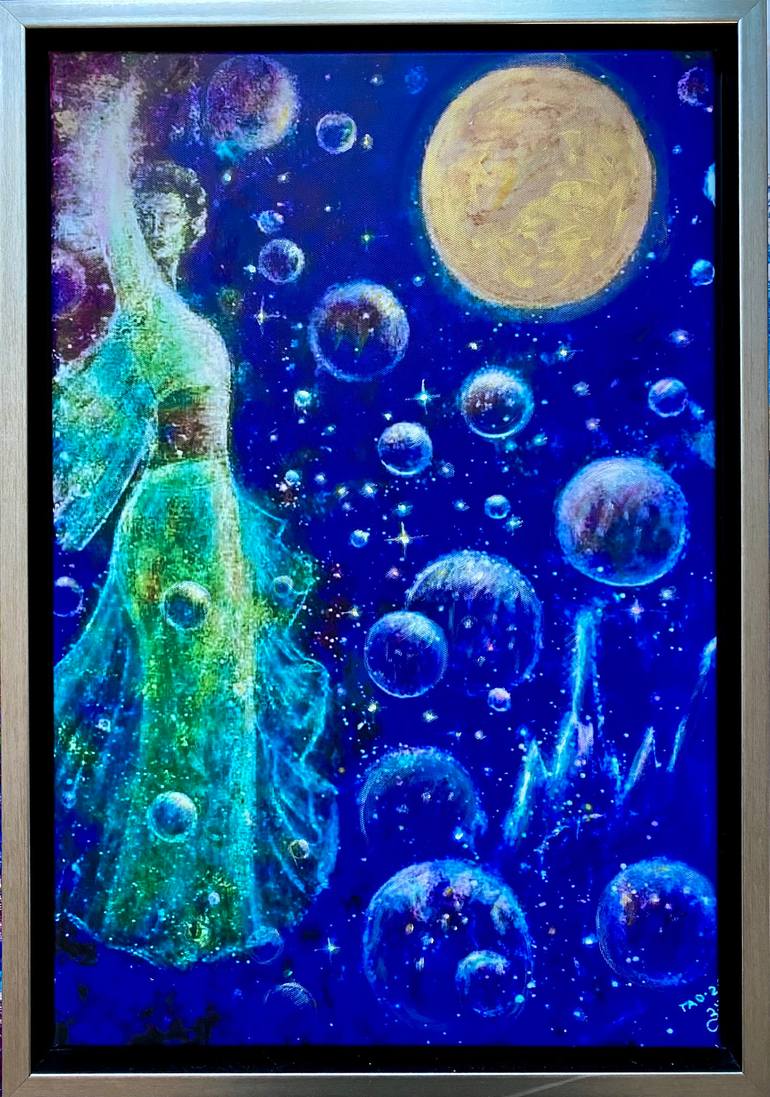 Full moon dance. PRINTS on canvas, frame On silver antic. The work I create takes place before my eyes to see things. Just express my emotions and sensitivity. The choice of colors is done gradually without necessarily having specific idea beforehand. Indeed, I like to work with chance and urgency. ...