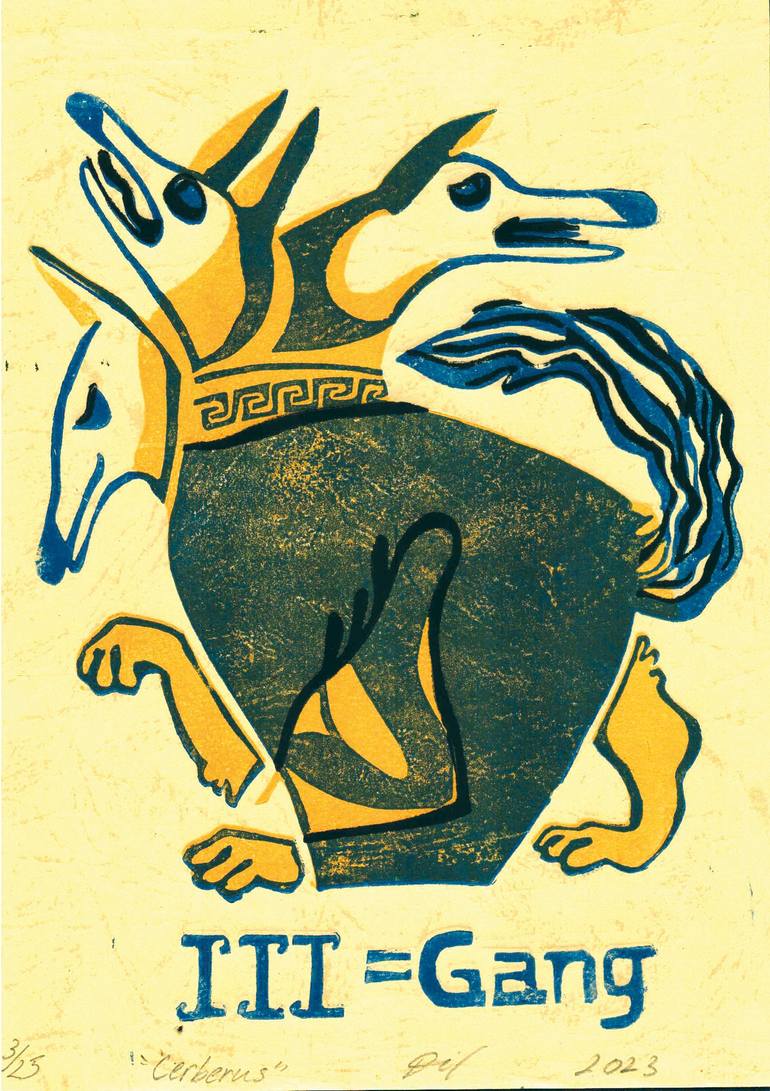 Seria of postcards from Greek's mythology. Design that included the shape of the vase and characters. All of them are made by using the linocut technique. A new one from my linocut project. In addition, it has a special yellow, decorative, soft, paper.