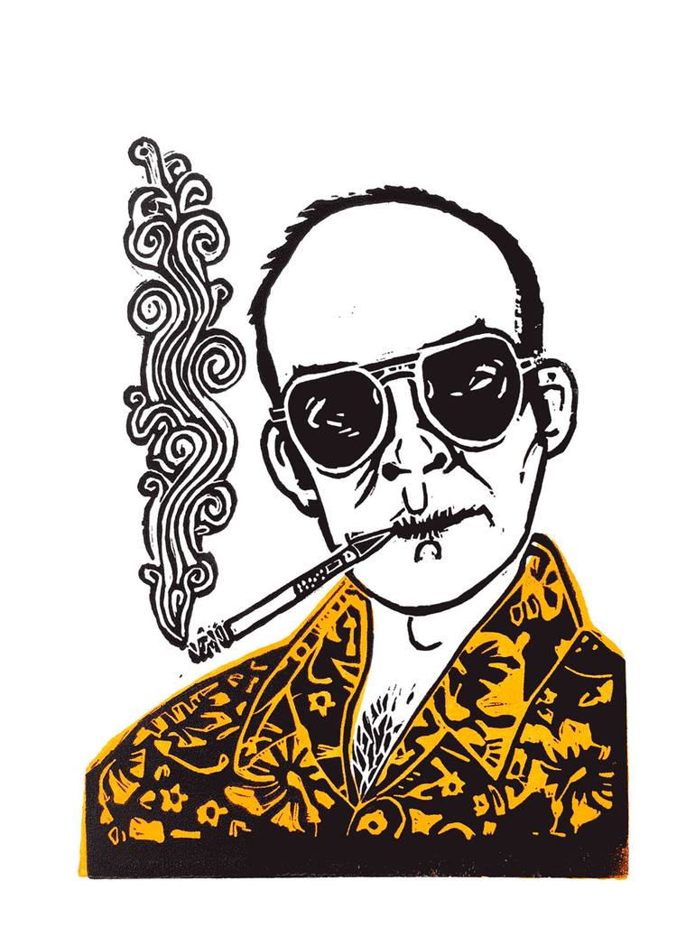 2 Colour A4 lino print of Hunter S Thompson