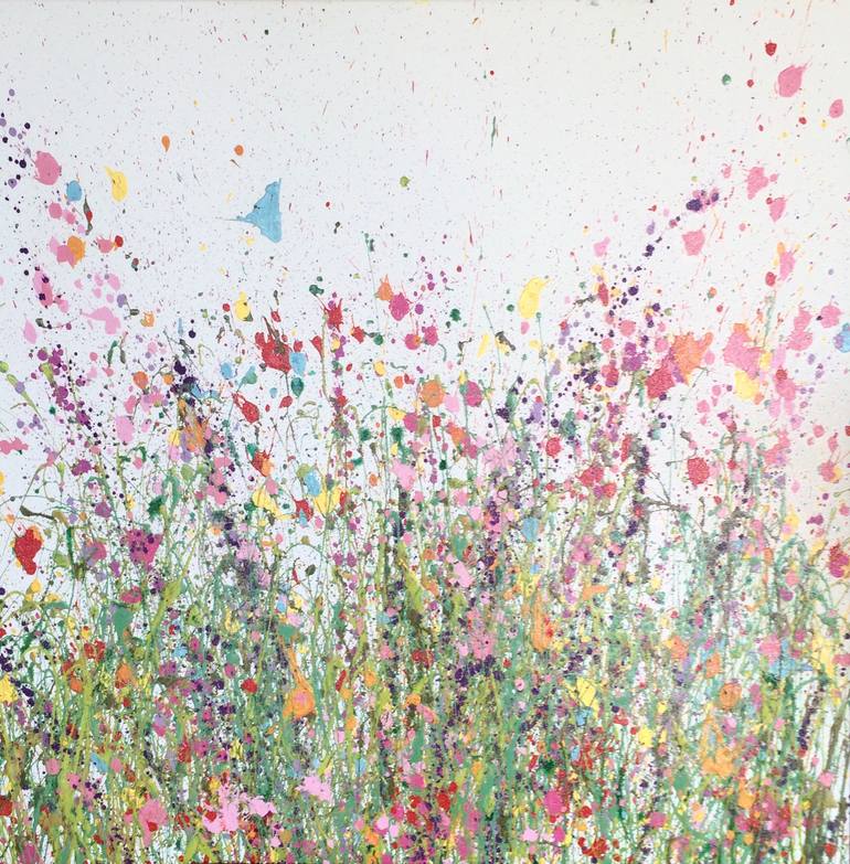 I trained in Sussex, England and have been working as a full-time professional painter since 2002. My contemporary paintings are held in private and public collections worldwide. The paintings are created using a multitude of layers and are deeply connected to nature. I work exclusively with oil paints and I believe my work communicates all that is good in the world. My rainbow drenched paintings sing of wild tumbling hedgerows, tangled meadowlands, open moorlands and magical forests. They whisper of love. My intention is to transport the viewer to an effervescent place of happiness that is literally saturated in joy. A place where paint smiles. The materials I use are extremely important. A mixture of oils, inks, glosses, glazes, fine glitter and gold leaf are applied in a multitude of layers. Washes are built up to form a work that is infused with colour. Paintbrushes, sponges, rags, palette knives and fingers are all used to create the finished piece. The result is a kaleidoscopic jewel like composition of rich pigments that prismatically opens up to reveal the radiance and beauty of nature. I always works outside, so lacy ice and howling gales have as much influence on the final painting as scorching sunshine and gentle breezes. The weather in a very direct way dictates how and where the paint falls. The creation of the piece is a very physical demanding process that requires my all. The initial marks evolve from an energetic dance around the canvas and the process is full of raw emotion and passion. In the early stages of an image I throw, rub, dribble and pour rich stains onto linen responding to internal and external landscapes as they unfold themselves. However, in the final piece there is also a quiet calm and peacefulness present in each image. A place for the soul to rest. A place for dreams to unfold. Spontaneous and instinctively my paintings demand risk, courage and a weaving of magic out of what emerges. Surrendering to the canvas I touch the place where mystery lies. I was brought up on a farm and spent much of her childhood in Ireland, my mother’s homeland. Inspired by the world and all it contained, I travelled widely in my twenties with a thirst for exploration and discovery. During this period I spent time living and working in Australia, Africa and Europe. One of my most formative journeys was spent with a horse-drawn community in England, discovering ancient, sacred and forgotten parts of our land.