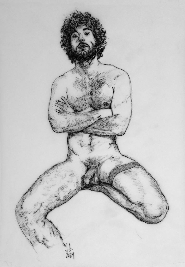 Jorge Bandarra is a portuguese figurative queer artist. The male body and portraiture are the primary interests for his artwork. His artwork can be erotic sometimes. Graphite, charcoal, pastel and pencils are technics he uses mostly. Oil and watercolour artworks are options too, The artist likes to explore mixing technics. The creative process starts by using photos or online sessions as a reference for ink pen studies ( you can find most of those studies available as prints or downloads). When possible the artist prefers to work from life. Although Bandarra has a gradiation in Visual Design, he chooses handmade artworks and still considers himself a self-taugh artist. His work is collected mostly in the United States of America, but also in Germany, Belgium, Canada, Spain, Ukrain and Portugal.The artist offers works on commission.