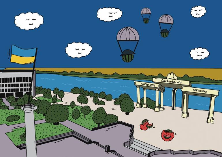 During March 2022, as a reaction to russia's war of aggression against Ukraine, I created a series of 24 illustrations. Each illustration depicts Ukrainian cities affected by russian aggression as they appeared "before." The basis for the illustrations was information from the list of destroyed cult...