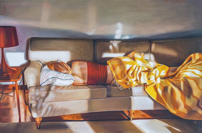 Sirje Papp, lives and works in Stockholm, Sweden A swedish contemporary artist inspired by the Renaissance masters, but also from contemporary photorealist painters as well as photography and film. Sirje Papp works in a realistic painting tradition and is inspired by the motion of the human body and our states of mind. Light and reflections are an important part of her compositions – without darkness there is no light. She captures with subtle sensitivity the borderland between dream and reality. Some of her works integrates water and a weightless human body, but there are no feelings of drowning. Instead, the model just floats there in calmness and contemplation together with Papp’s playfulness between light and dark. Sirje's painting portrays themes around the symbiosis between man and nature but also the existential questions of time, space, life and mortality. Her fascination with the human body shapes the motifs that provide a wordless story. A title for the painting is perhaps not necessary but still there rests a calmness, a contemplation in her figures, as if they were caught in a frozen moment. Papp’s paintings give expression to a suspenseful mystery and can be expressed as magical realism. Through her realistic, evocative and poetic imagery, she wants to achieve a sense of presence and wonder in the spectator.