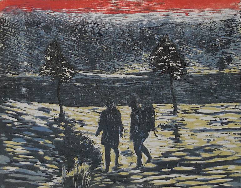 J'étais en visite en Ecosse. La fascination des lochs le coté brut de la nature, sa lumière. La taille douce et la gravure sur bois sont les deux techniques que je préfère en gravure.mais le bois est un matériau noble dans lequel on trouve sensualité dans l'exécution mais aussi des aspects colorés...