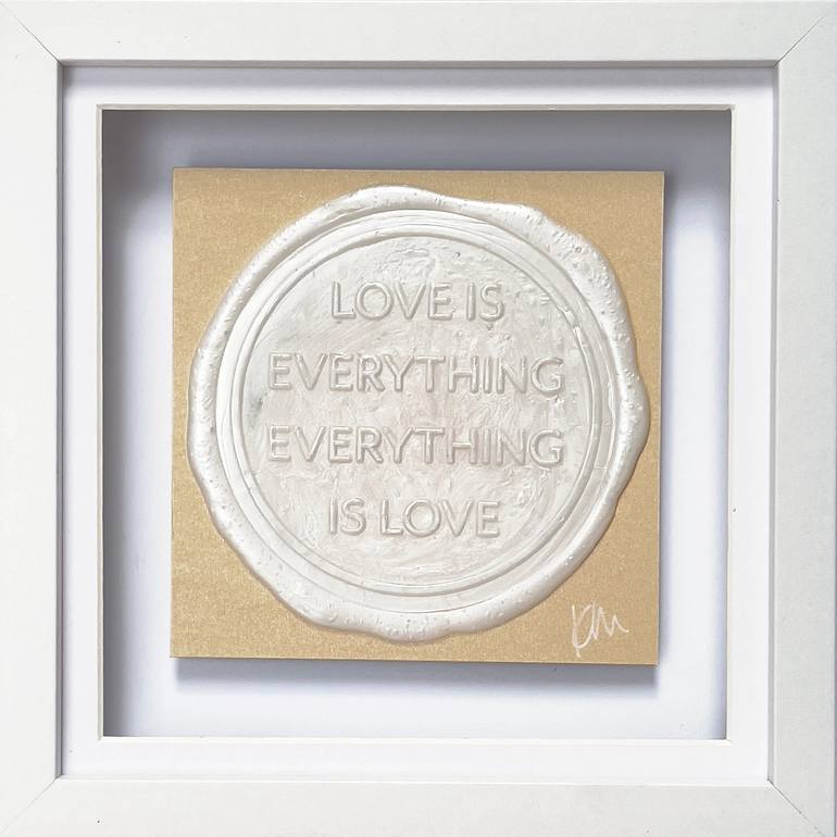 Not a print in the usual sense, this a 3D impression into wax with the affirmation, “Love is Everything, Everything is Love” A unique pearlescent white wax seal on a gold coloured board with a wonderfully subtly embossed texture that runs across the surface, with an understated, pearlescent finis...