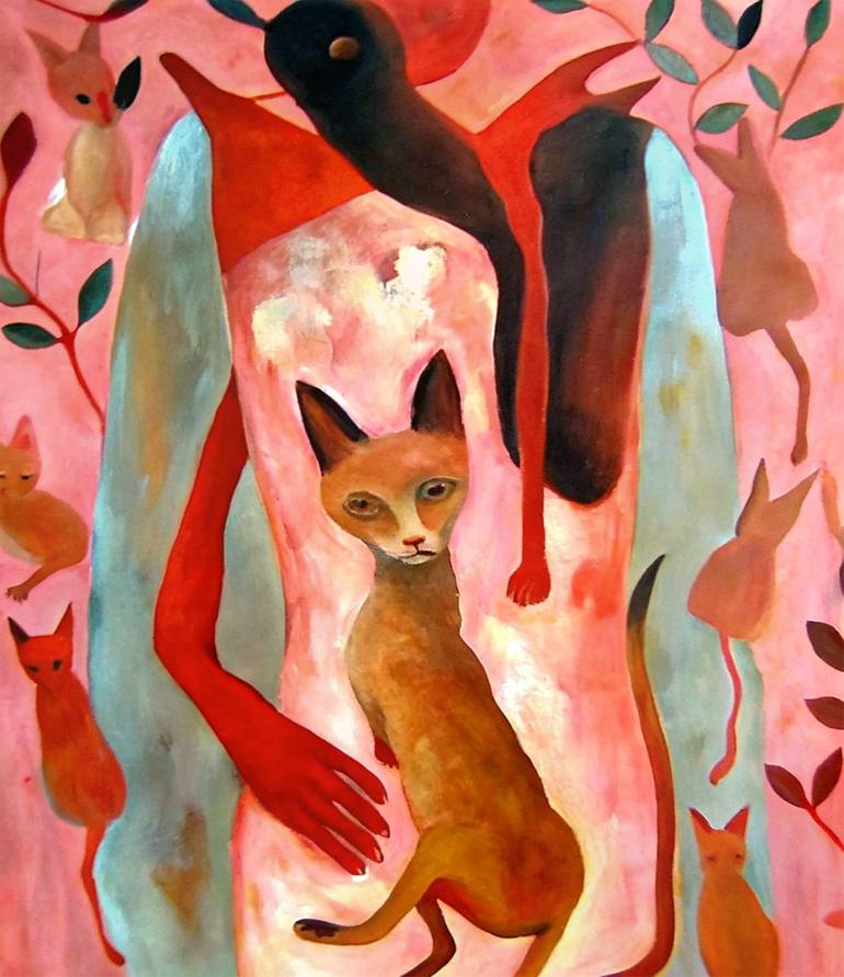 Hi! I'm a visual artist. I was born and living in Budapest, Hungary. Leaving behind the world of design I mainly deal with painting. In the past Iwas inspired mainly by psychology and my own and otherss' memories. I used to process old photos. The characters in my pictures were mostly women and little girls, less often dogs. The theme could be a portrait or a whole figurative representation, I tried to fill it with secondary, underlying content. During the closed, stimulus-poor months of the Covid quarantine, I spontaneously painted wildly dancing, partying figures, with loud colors, without caring about the anatomy. Then the shadow figures appeared in my pictures. These fragmented, distorted figures and torsos became the protagonists of my new paintings. I don't spare my figures. I stretch, compress, truncate, rotate, mirror, duplicate them and place them in different situations. It is not only the figures, the arrangement of the composition, or the setting of the point of view that changes, but the former restrained and decent, limited use of color has been replaced by an inner desire for a provocative, undisciplined use of color. The pandemic changed the world and me. Before, I processed the past comfortably, and now I let the voices and thoughts that disturb my present come to the surface from the depths of my consciousness and try to organize them.