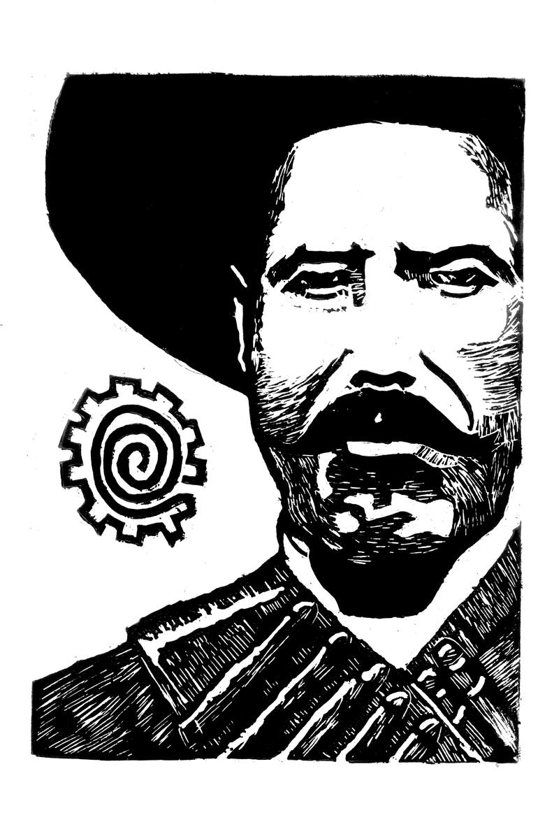 Es un linolegrabado y Giclée Print de Francisco Villa, prócer mexicano que destaco durante la Revolución Mexicana de 1910. Técnica del Taller de Gráfica Popular.