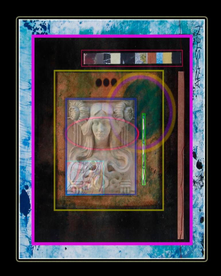 I have an ambitious approach to life ... and to art ... make something happen every day ... but most of all have fun doing it! A sculptor first, and now working in 2D, I do my best to do just that. Presented here are examples of some of my work. •• My sculpture runs the gamut from abstract, to figurative, to architectural. The materials and methods used are diverse ... from figures modeled in clay or wax, then cast in pewter or bronze ... to aluminum maquettes (produced by evaporative pattern casting) which serve as the 3D blueprints for the pieces that are enlarged and fabricated from sheet metal of all kinds. •• My 2D pieces range from abstract to figurative. You’ll find Originals done in oils or acrylic, one-of-a-kind monotypes, collages, mixed media paintings, and more ... I love working in all mediums. Some of my 2D work may be available as reproductions on this site. ••• MY FASCINATION WITH SCIENCE FICTION & MAKE BELIEVE - When I was in second grade, television was new and the hottest thing. The "Adventures of Flash Gordon" was my favorite program. There was only one kid in the neighborhood who had a TV. We, all the kids, gathered at his house for every episode. I was a huge fan of the characters. Flash was cool and my hero. Dale Arden was OK but Princess Aura was way cooler because she was naughty. Ming The Mercilous was very interesting. But Dr. Zarkov and his super duper telescope - that could see into time forwards and backwards, far and near - was the star of the show for me. The spaceship was really hoakey. You could see the wire that it was traveling on and the little puffs of smoke coming out of it were a joke, even for me. But the concept of the show was magical. Also at that time there were radio shows about space travel and aliens and monsters. I would listen to those shows with my grandfather as I sat on the floor next to the big wooden box radio so I could get the full impact of the sounds. •• These shows inspired me to draw spaceships, mostly "new and improved" versions of Flash's ship. I taped them all over my bedroom walls. At night I would travel with Flash. We would go to distant parts of the Universe and explore ancient ruins - like what I saw in National Geographic when I was not looking at the bare-breasted girls of exotic cultures. (I think artists and sculptors, are to a large part, voyeurs.) Those memories pop up in my art over and over. •• Faces also intrigue and inspire me.