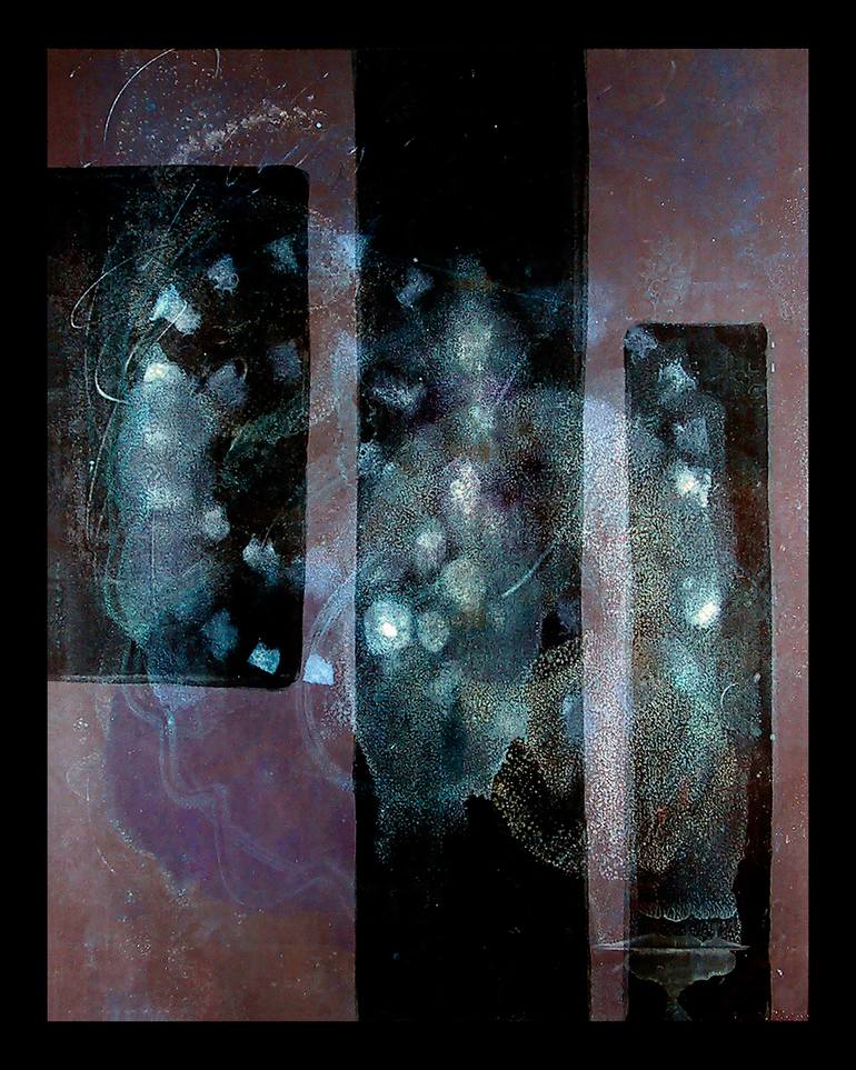 Shuttering Nebula This is a composite picture of a nebula taken at weekly intervals from a telescope on the travel oasis that we stopped at to replenish supplies. It had a series of moons that seemed to shutter bright and then dim. I love making monotypes. The big attraction to me is the huge amo...