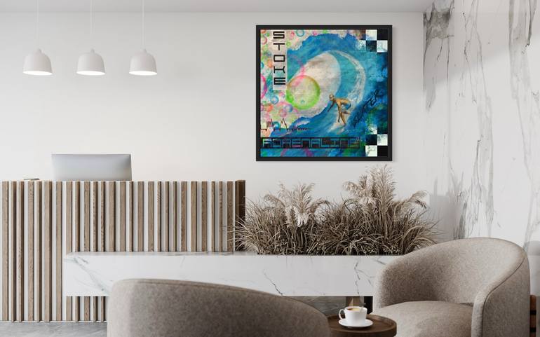 Kelly Slater the all time Goat in surfing. The most winningest surfer of all time comes out of this nice barrel in Tahiti with all the energy, stoke, and adrenaline. This is a hand embellished signed and numbered artist proof wrapped in a custom floater frame and ready to hang.