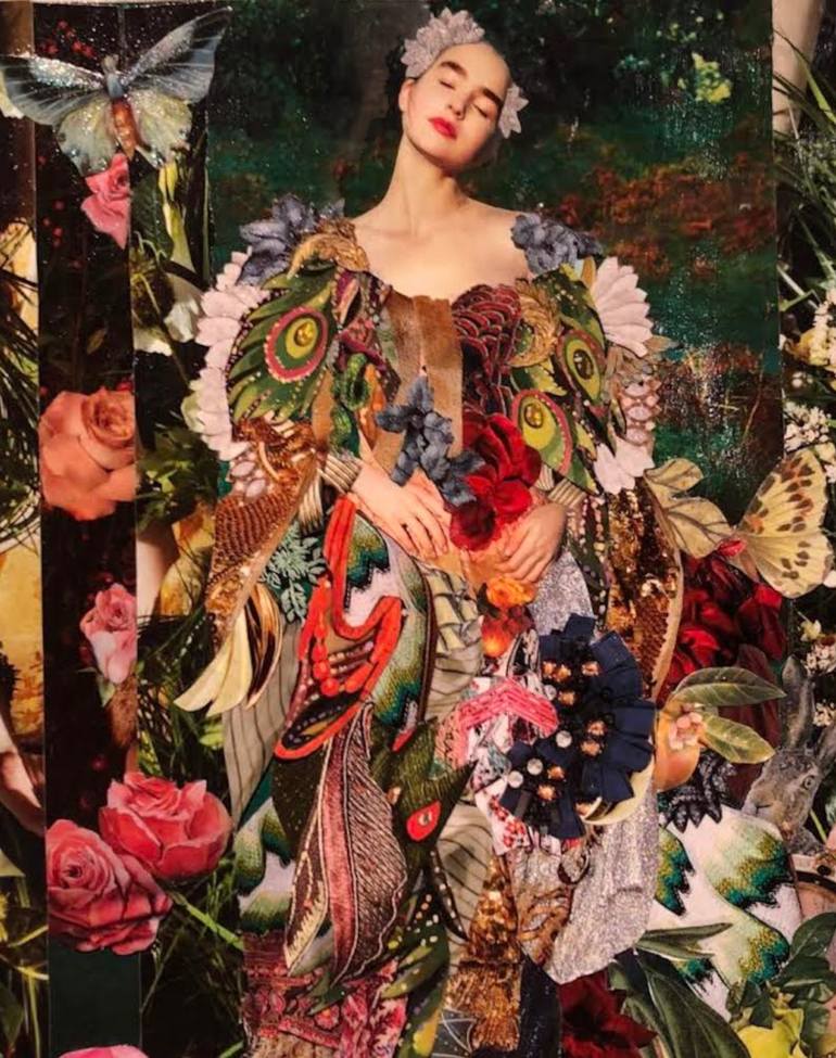 Danic Lago is a Brazilian artist based in London, working with mixed media collage. Her practice is rooted in over 25 years of creative experience developed across Switzerland, Mexico, and the UK, shaped by an early career in fashion trend research and close collaborations with European and Brazilian designers. Her work explores strength and emotion shaped by the intuition of the divine feminine. Using textiles, colour, and found objects, Danic creates layered compositions that function as visual poetry, handmade narratives that invite reflection, curiosity, and personal interpretation. Each piece unfolds slowly, revealing meaning through subtle symbolism. Central to her practice is sacred transformation. By reusing and reimagining everyday materials,I breathe new life into what might otherwise be overlooked or discarded. This process-driven approach allows me to create works that feel both intimate and expansive, grounded in the physical world yet resonant with spiritism and otherworldy beauty. My mixed media works are not intended to be passively viewed, but experienced. They exist as spaces of dialogue between artist, material, and viewer. Through layering, I construct pieces that balance the deeply personal with the universally felt, encouraging viewers to bring their own stories and sensations into the work. Ultimately, my practice is an exploration of connection: between materials and meaning, real and spiritual, inner life and shared experience. My work seeks to awaken moments of quiet transformation through the language of touch, texture, and storytelling.