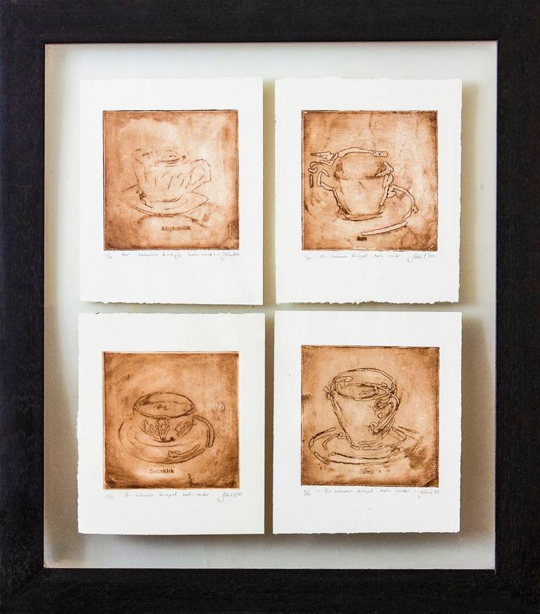 There is Forty Years Sake of a Cup of Coffee Artist: Göknil Gümüş Sungurtekin Medium: Gravure Printmaking "There is Forty Years’ Sake of a Cup of Coffee" by Göknil Gümüş Sungurtekin is a unique celebration of Turkish coffee culture, inspired by the beloved proverb: "A cup of coffee is remembered fo...