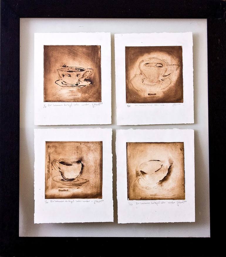 There is Forty Years Sake of a Cup of Coffee Artist: Göknil Gümüş Sungurtekin Medium: Gravure Printmaking "There is Forty Years’ Sake of a Cup of Coffee" by Göknil Gümüş Sungurtekin is a unique celebration of Turkish coffee culture, inspired by the beloved proverb: "A cup of coffee is remembered fo...