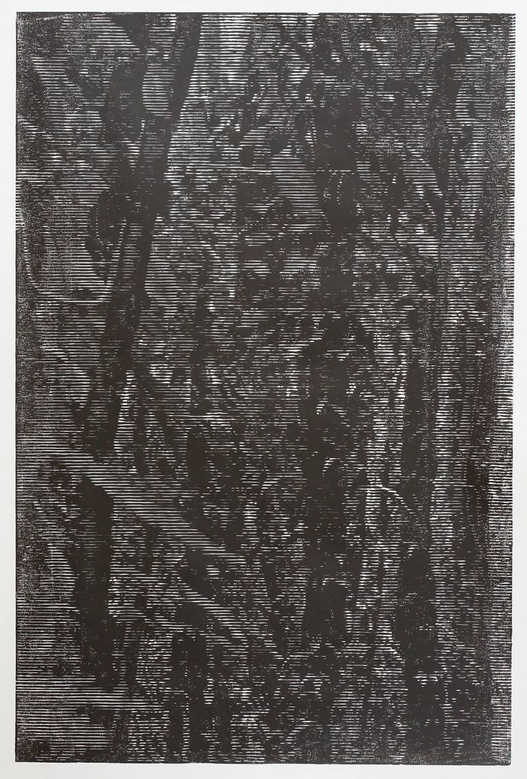 Stefan Osnowski is a German visual artist who employs one of the oldest reproduction techniques to create an intricate, digitally-inspired, ultra-modern aesthetic. He exclusively uses the centuries-old process of woodblock printing. Osnowski explores digital codes, transforming them into analog representations to depict phenomena such as time, movement, and space within a two-dimensional image frame. This transformation involves converting the image into an abstract binary barcode—1s and 0s—carved into a wooden panel and printed by hand using palm-sized glass lenses. The process of selecting a theme or medium is as integral to the concept as the physical contact and craftsmanship involved. In 2024, Osnowski was awarded third place in the international Luxembourg Art Prize. He lives and works in Lisbon. „My work explores the tension between structure and unpredictability, transforming familiar motifs into shifting frameworks of time and space. By weaving geometric harmony with chaotic disruptions, I blur the boundaries between rationality and emotion. The result is a visual language that oscillates between control and spontaneity, figuration and abstraction—inviting the viewer to navigate a dynamic, ever-changing landscape.“