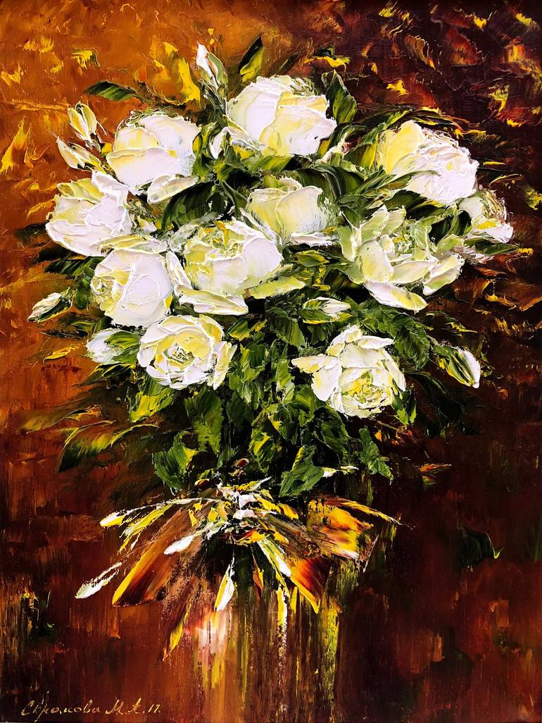 Floral still life with white buds. Ivory color roses 3d painting. Amazing large peonies thin petals art. White-beige flower abstraction painting. 100% SATISFACTION! Your satisfaction is very important to Marina and she works with great attention, energy and positivity. You have the opportunity t...