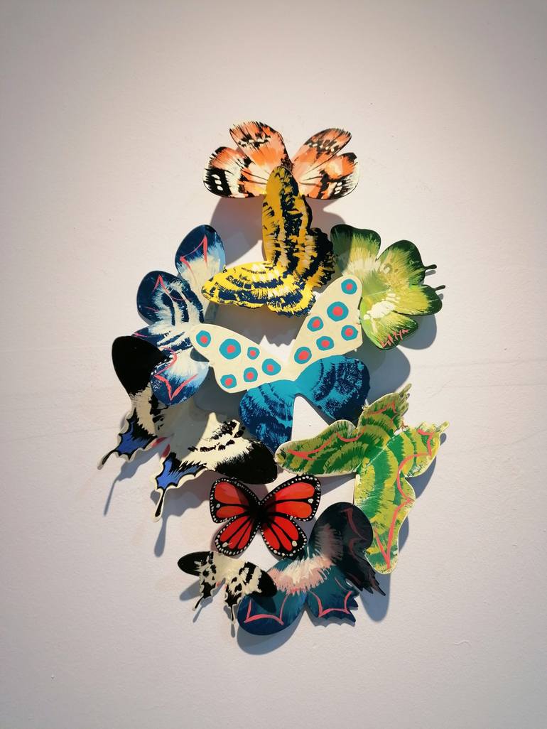 Inspired by the nature. 10 blue-green and orange butterflies dancing together.