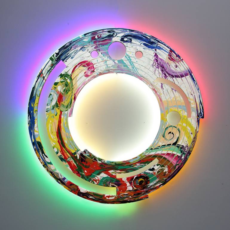 Description of work This piece of my work first cuts the Aosong board, then draws it with propylene, and finally installs LED light strips and hanging supports behind it. Each piece of work is accompanied by a fidelity certificate, installation and suspension diagrams. During the exhibition, the LED...