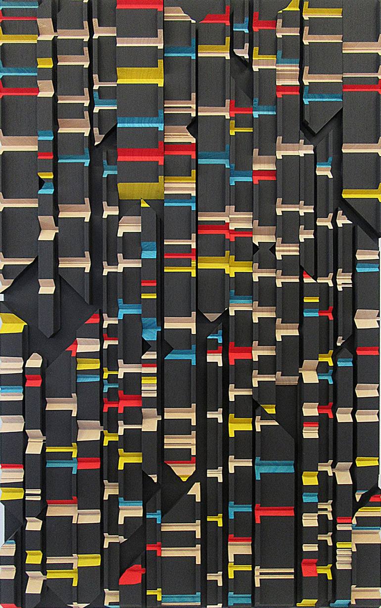 Frank Murri (Australia) The nature of my art practice consists of wall-hung, abstract timber relief sculptural works. These pieces are formed by incorporating Mathematical formulas, theorems & sequences; Musical scores & Literary extracts. It is an art form which I have developed, and which I hope one sees as a unique creation. All of my works advocate pure abstraction in an attempt to synthesize a design aesthetic. By looking into the realm of pure mathematics, there lies within a beauty which transcends its usual form. As Bertrand Russell stated, “Mathematics, rightly viewed, possesses not only truth, but supreme beauty — a beauty cold and austere, like that of sculpture.” The Mathematical pieces I create are formulated to capture this beauty. ~*~ In addition to my Mathematical art pieces, I have also created abstract representations of Musical scores as wall-hung timber relief sculptural pieces. They represent the first page of sheet music of particular classical works, in particular: Puccini's 'Vissi dárte' (I lived for art) from Tosca; Verdi's 'Grand March from Aida'; Schubert's 'Ave Maria, Op.52, No. 6'; Korsakov's 'The Flight of the Bumble-Bee' and Albinoni's 'Adagio'. Each sculptural piece has the notation of sheet music represented through carvings into the timber staves (also known as staffs), or notes on outer ledger lines. Please note that my pieces are pure abstractions of musical scores, as I have not used the usual and specific music symbols and elements. They have not been created as direct representations to be performed. I have created these sculptural pieces as an artistic expression of the beauty I see held in the musical score (itself a wonderful abstraction and code of notes and symbols) which represent such beautiful pieces of music. ~*~ In addition to the Mathematical & Musical art pieces, I have also created abstract representations of Literary extracts as wall-hung timber relief sculptural pieces. Each segment is carved in a particular sequence representing a specific literary work. The spacing between each carving represents a letter of those words in the piece. ie, the letter “A” = 1mm, whilst “Z” = 26mm spacing.