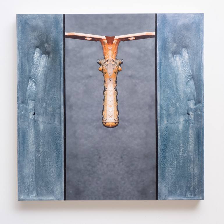 The left blue field is made of polyester and the right blue field is print. I often get the ideas for my sculptures when I meditate or close my eyes. I usually see the finished sculpture hanging there and after making a simple sketch, my job is to build it so that it matches the feeling I originally...