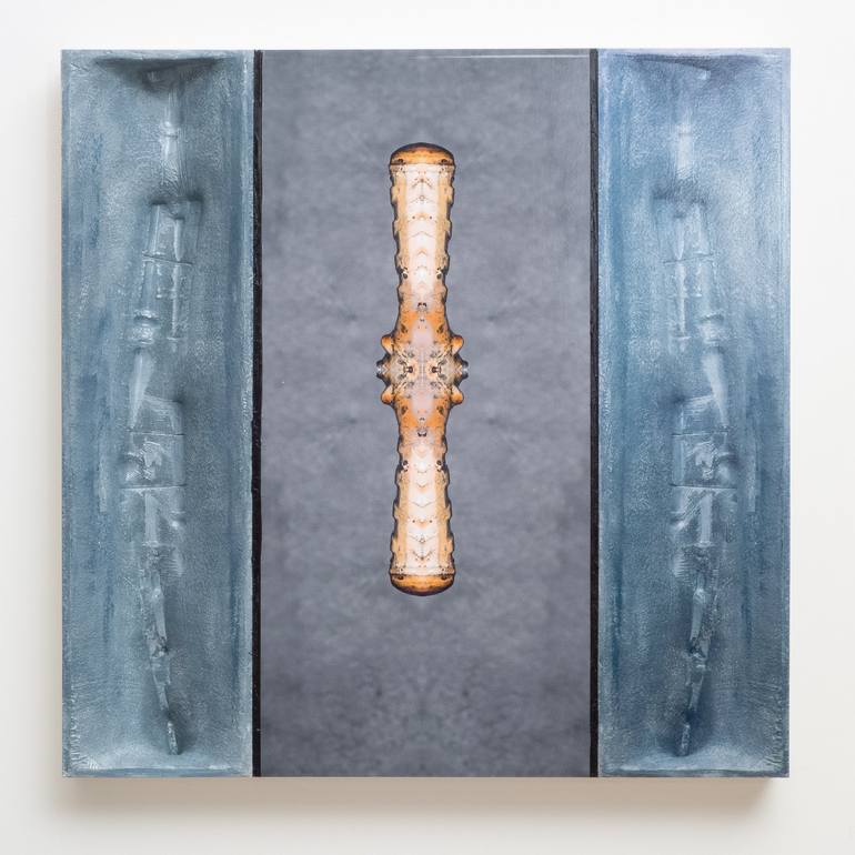 The left blue field is made of polyester and the right blue field is print. I often get the ideas for my sculptures when I meditate or close my eyes. I usually see the finished sculpture hanging there and after making a simple sketch, my job is to build it so that it matches the feeling I originally...