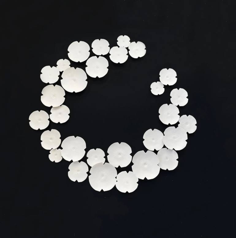 This art piece titles "29 Graces" and is made up of delicate looking wall art flowers which were all formed by hand from beautiful high-fired white porcelain. Given the nature of this artwork they would be well suited within all interior settings from, kitchens and bathrooms as well as living spaces...
