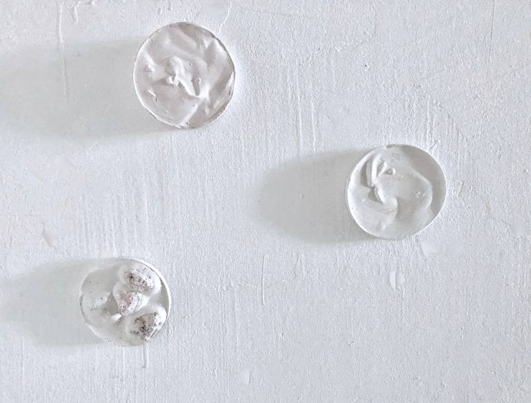 The Creamy Moonstones are made of plaster poured in molds. They look like lava that has turned solid They look like ice-cream really! Each stone has a little hole in the back that fits a pin for invisible hanging. Pins, positioning map and instructions are included. They are signed on the back. This...