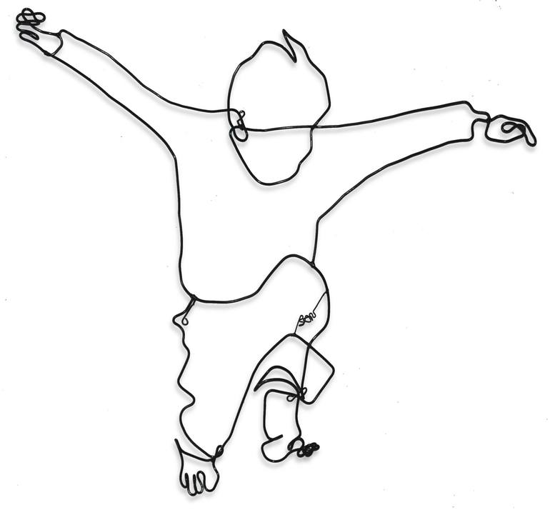 This is a 36 X 32-inch welded wire wall sculpture of a boy jumping through the air. It is made of 5 mm thick (#9 gauge) low carbon steel wire that I bend by hand and weld in numerous spots to assure stability, then powder coat gloss black** with an extremely durable, weather resistant material that ...