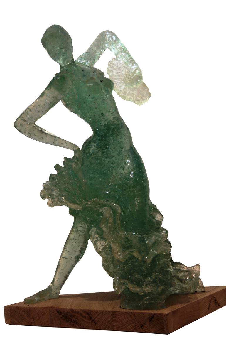 The sculpture made of broken glass and resin . This special technique gives the sculpture diverse transparencies. The colore of the sculpture is canged acording the glass I use. The sculpture is very strong,