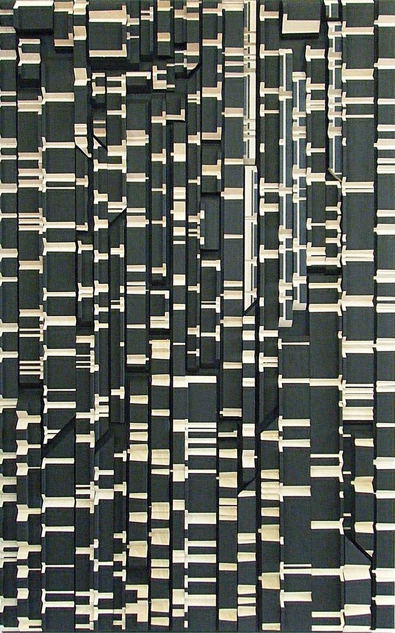 Frank Murri (Australia) The nature of my art practice consists of wall-hung, abstract timber relief sculptural works. These pieces are formed by incorporating Mathematical formulas, theorems & sequences; Musical scores & Literary extracts. It is an art form which I have developed, and which I hope one sees as a unique creation. All of my works advocate pure abstraction in an attempt to synthesize a design aesthetic. By looking into the realm of pure mathematics, there lies within a beauty which transcends its usual form. As Bertrand Russell stated, “Mathematics, rightly viewed, possesses not only truth, but supreme beauty — a beauty cold and austere, like that of sculpture.” The Mathematical pieces I create are formulated to capture this beauty. ~*~ In addition to my Mathematical art pieces, I have also created abstract representations of Musical scores as wall-hung timber relief sculptural pieces. They represent the first page of sheet music of particular classical works, in particular: Puccini's 'Vissi dárte' (I lived for art) from Tosca; Verdi's 'Grand March from Aida'; Schubert's 'Ave Maria, Op.52, No. 6'; Korsakov's 'The Flight of the Bumble-Bee' and Albinoni's 'Adagio'. Each sculptural piece has the notation of sheet music represented through carvings into the timber staves (also known as staffs), or notes on outer ledger lines. Please note that my pieces are pure abstractions of musical scores, as I have not used the usual and specific music symbols and elements. They have not been created as direct representations to be performed. I have created these sculptural pieces as an artistic expression of the beauty I see held in the musical score (itself a wonderful abstraction and code of notes and symbols) which represent such beautiful pieces of music. ~*~ In addition to the Mathematical & Musical art pieces, I have also created abstract representations of Literary extracts as wall-hung timber relief sculptural pieces. Each segment is carved in a particular sequence representing a specific literary work. The spacing between each carving represents a letter of those words in the piece. ie, the letter “A” = 1mm, whilst “Z” = 26mm spacing.