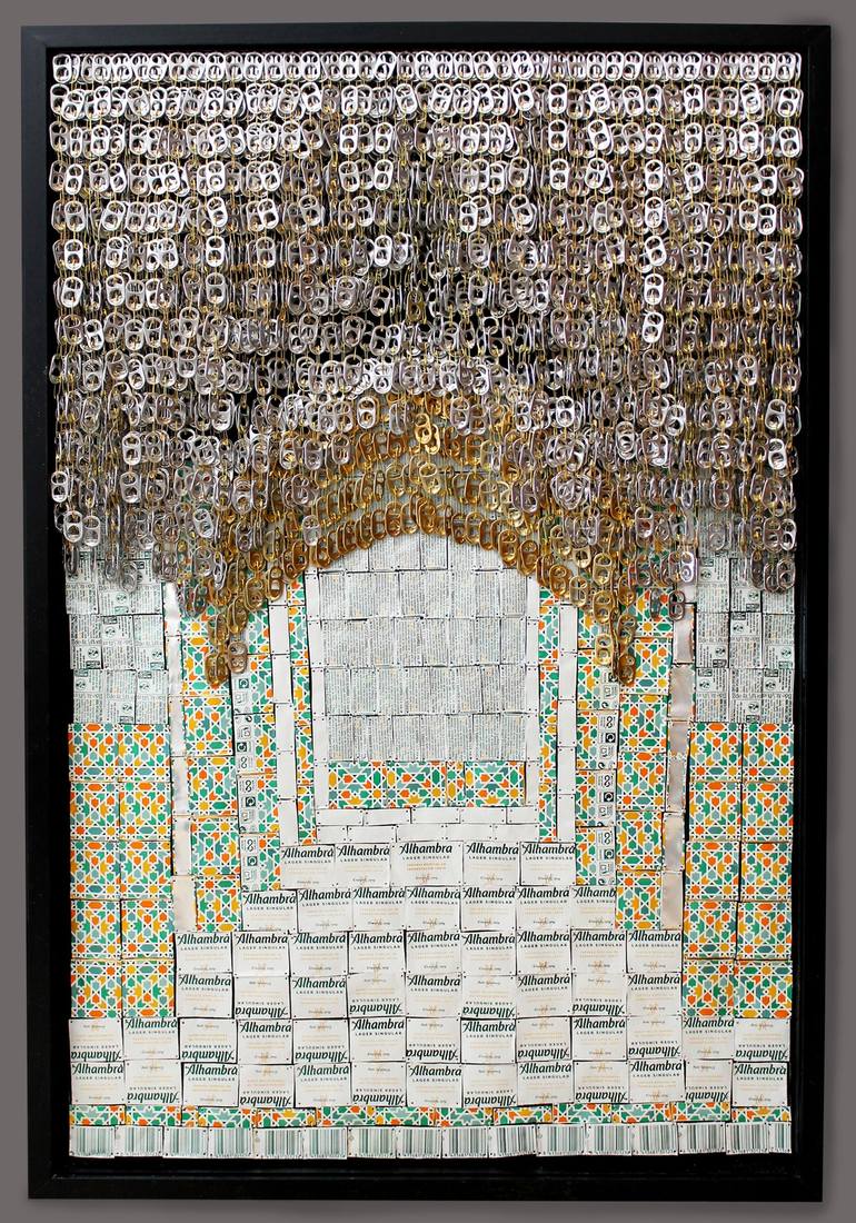Work inspired by THE ALHAMBRA of Granada. Made exclusively from recycling discarded beverage cans, and abandoned on the streets of my city; giving it a new artistic use!