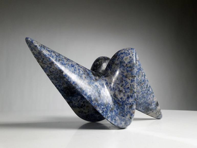 This sculpture is a study where i try to combine geometry with organic shapes. Carved in a beautiful block of rare blue granite. it gently rests - balanced with no pin or base. I chose granite as this piece could last for 1000s of years - similar to the polished granite obelisks of Egypt.