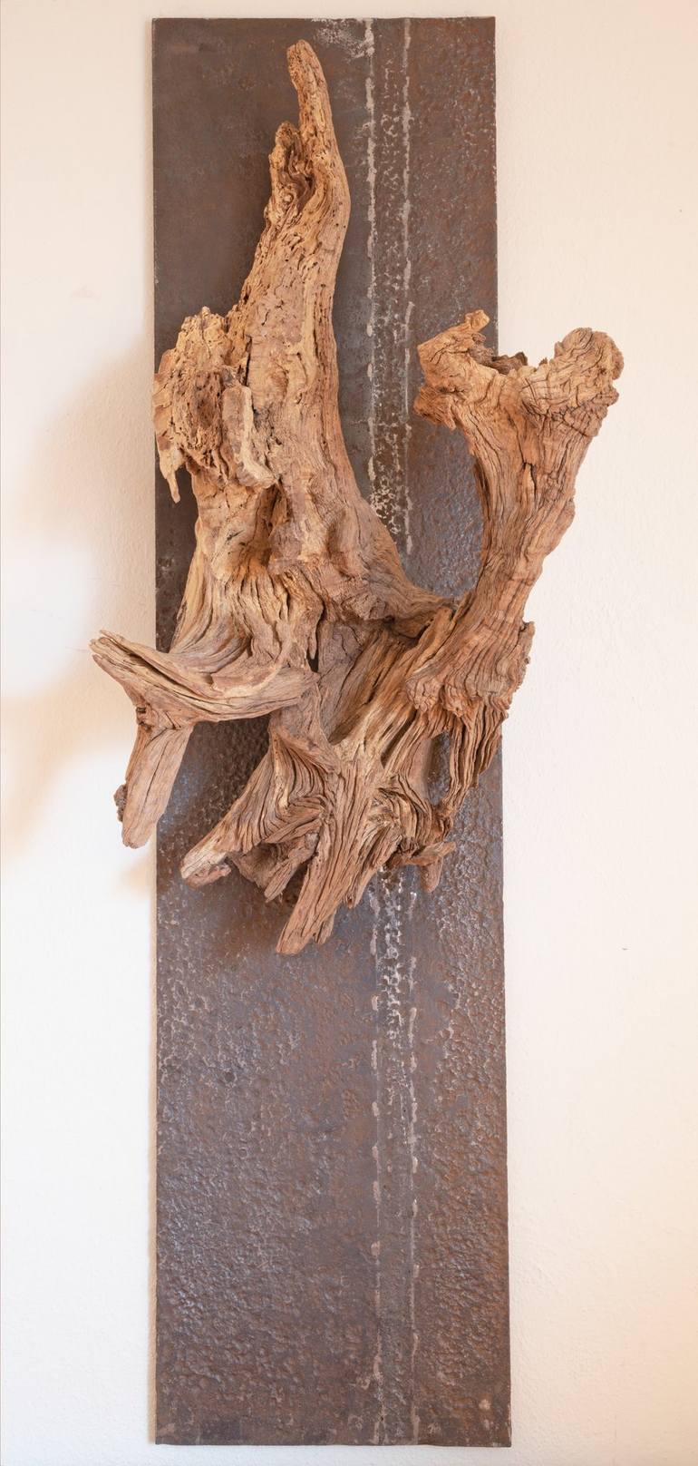 I offer the hanging oak decorative sculpture, humidity stabilized, manually cleaned without any new cuts and without the surface treatment leaved originaly. The sculpture is located at the old deep rusted metal plate. Wood was lying on the ground many years, which has created a unique structure and ...