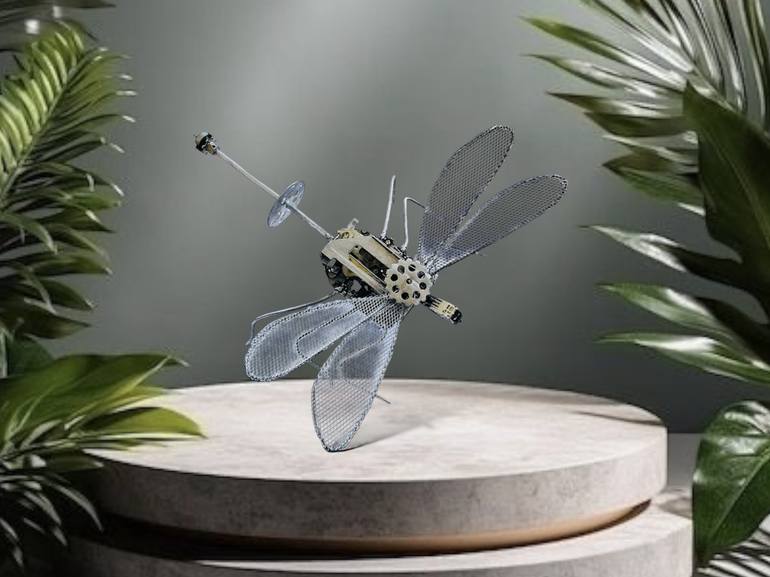 The Futuristic Dragonfly 14x34x38cm, Iron, 2024 Come with signed certificate of authenticity. "The Futuristic Dragonfly" is an exquisite sculpture crafted from iron, measuring 14x34x38 cm, that captures the elegance and fragility of this iconic insect. The delicate mesh wings and industrial design...