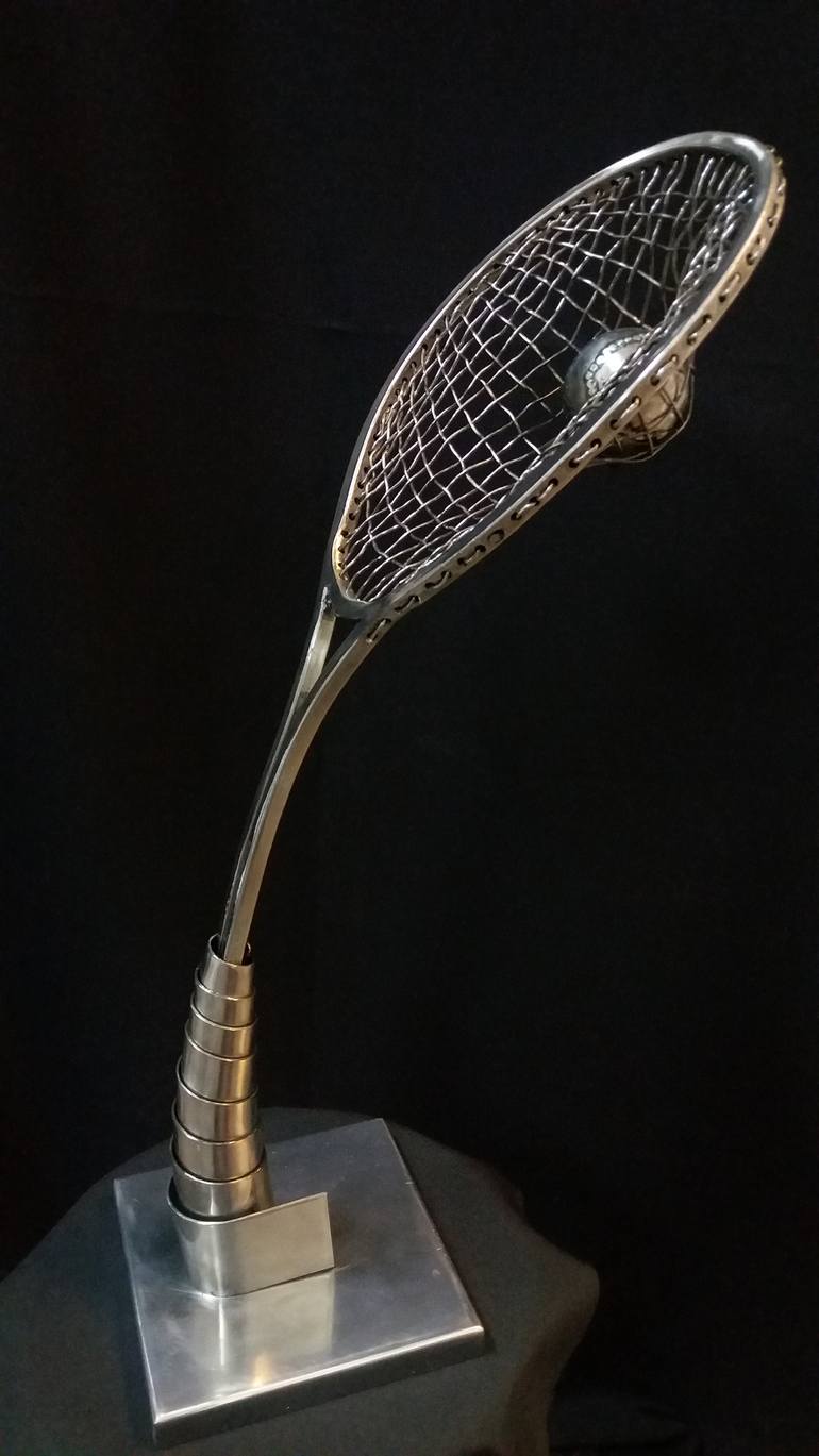 I depicted the plasticity of the racket at the moment the ball hits. At this moment, which is practically invisible, the energy stops and changes its direction The video of the sculpture is here: