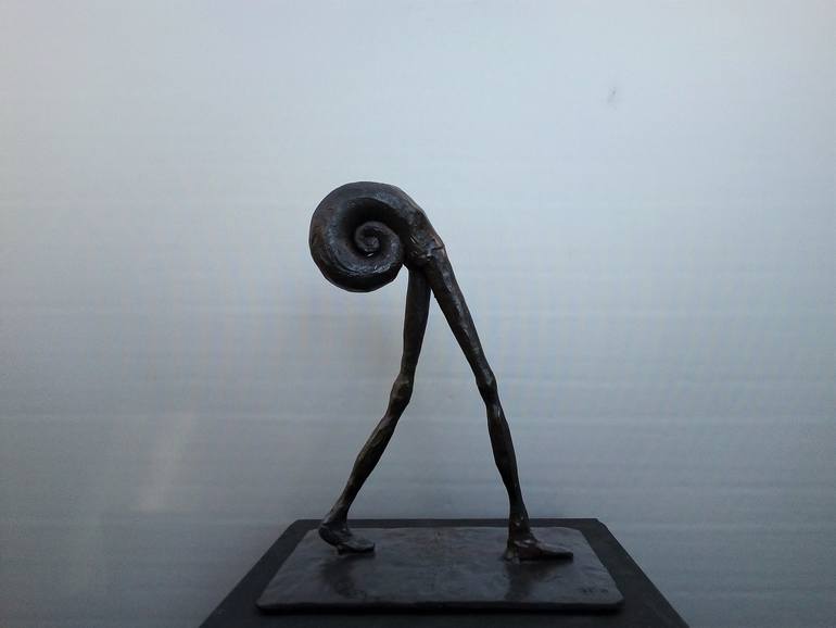 Andante is an Italian word used in classical music to indicate a walking tempo. The addendum: "ma non troppo" means: not to much or, in this case, not to fast. This duality is an amazing subject to illustrate with an surrealistic sculpture. Andante ma non troppo, perhaps it invites the hasty viewer ...