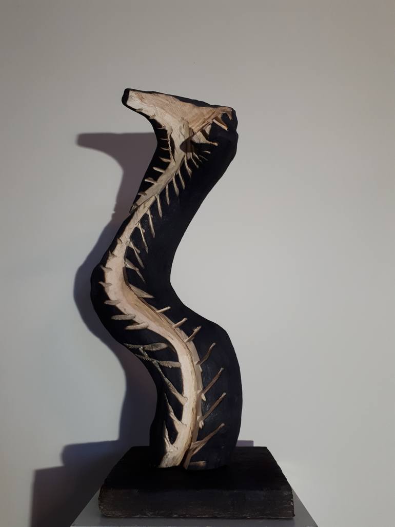 Cette sculpture, brûlée et puis travaillée de manière très brute a quelque chose de très primitif, d'animal qui me touche. Le bois tordu par le temps semble d'une énergie très grande. C'est comme un cri qui sort de la terre.