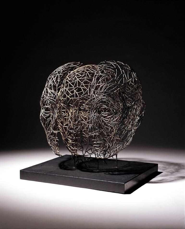 AHN Kyung Moon's work Explores the reasons and bases of human existence Ahn has been interested in the psychoanalytic viewpointof Freud which he first came across in his 20's. Ahn's work reflects his analyses of the inner workings of the human mind, thesubconsciousness of individuals and society. In his work, Ahnuseshis analysessymbolically to express his views on human existence. He has interpreted in his work the structural contradictions and conflicts in human society from the viewpoint of religion and human nature. The themes of the first solo exhibition held in 1998 were reality, illusion and transcendental self. Yearning to transcend and be purified through religion fromnatural desires and suppression was expressed by a variety of materials and methods. The title of the second solo exhibition in 2001 was "˜Road', which expressed asceticism and the process of sublimation of individuals approaching the Absolute in their lives as pilgrims walking through a desert. The material used was Korean traditional paper. The third solo exhibition in 2004 dealt with two themes,"˜silence' and "˜relationship' under the paradoxical title of "˜Sound of Silence'. Silence embodyingdesire and despair of individuals living today was expressed as insects or mummies wrapped and trapped in blue cling film- like cocoons. Relationship was expressed as conjoined human forms and animal forms that were made by wrapping the frames with black plastic. Both silence and relationship metaphorically expressed various psychological states felt in human lives as social animals. The title of the fourth solo exhibition in 2010, "˜Inner Landscape'had a double meaning. Mainly steel and stainless steel lines were used to create an unrealistic atmosphere from an ordinary scene of a room. It was an interior of a room but at the same time it represented an internal state of mind of individuals, who were isolated and suffered amongst material richness of contemporary society. Current work metaphorically expresses various states of mind of individuals in social relationships and the theme is extended to the relationship between the natural environment and humans. Through the relationship between the human beings and nature, the meaning of life and its precious value is also expressed.