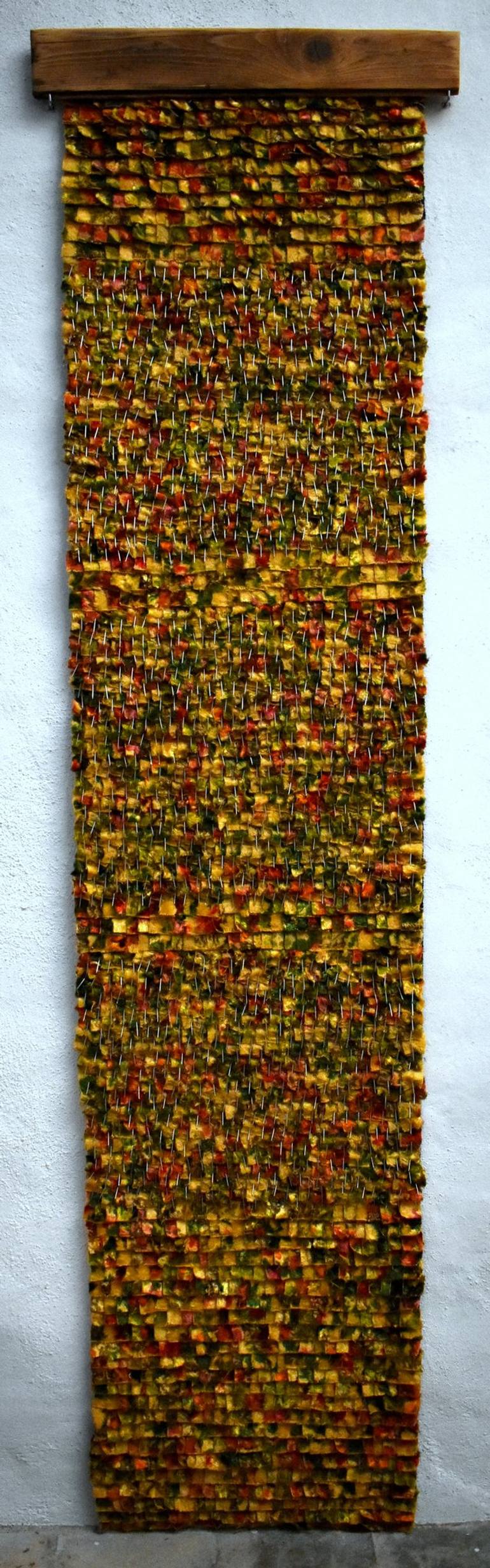 The work is created from the deconstruction and re-contextualising of an antique bed throw. Built up methodically and embellished repeatedly with nails. The artwork ships in a secure cardboard box (NOT crate), the work carefully packed with acid free paper, bubble wrap and protective plastic. I am...