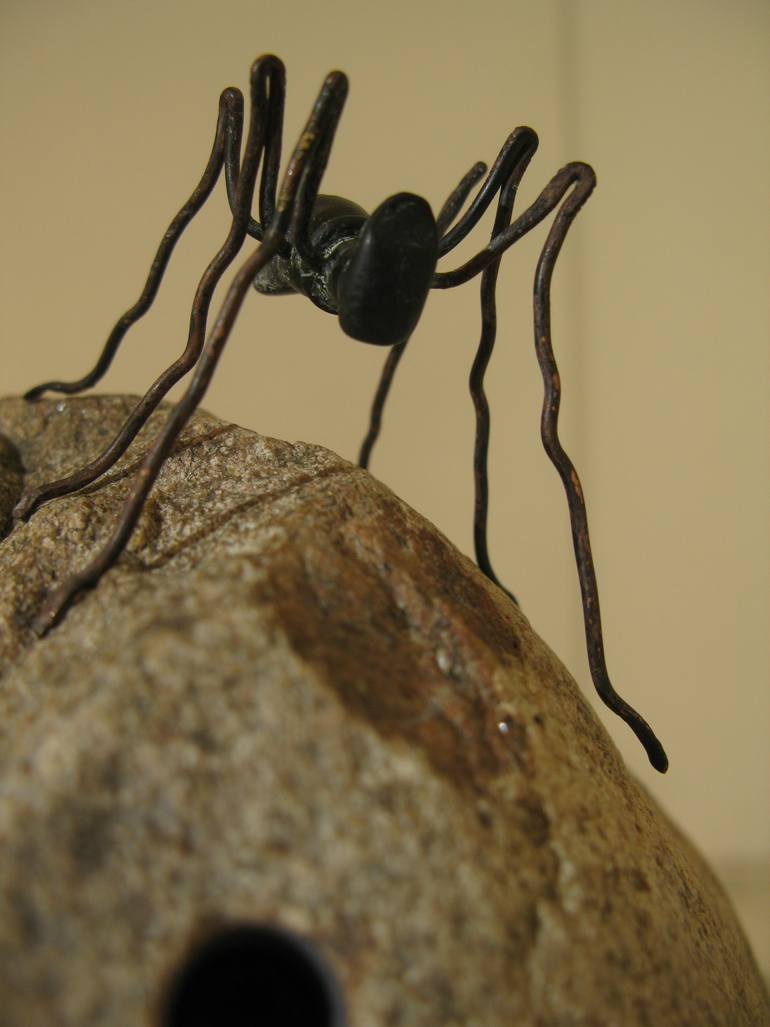 A small ant standing on a stone and watching the hole. Is there its home? If so, is there any more ants inside?