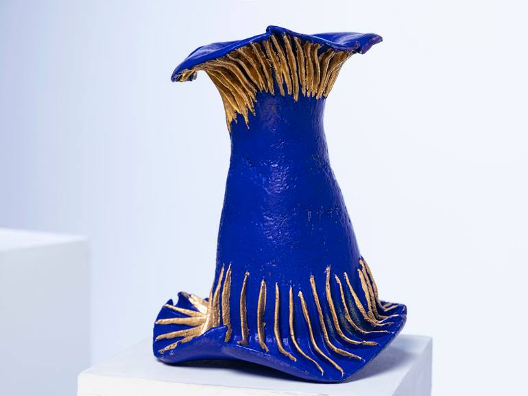 The Holy Mushrooms series consists of three figurative biomorphic sculptures of bright blue color with gold accents, shaped like mushrooms of intricate shape, not found in natural nature. The work materializes images that exist only in human fantasies. The name Holy Mushrooms refers to the Greek my...