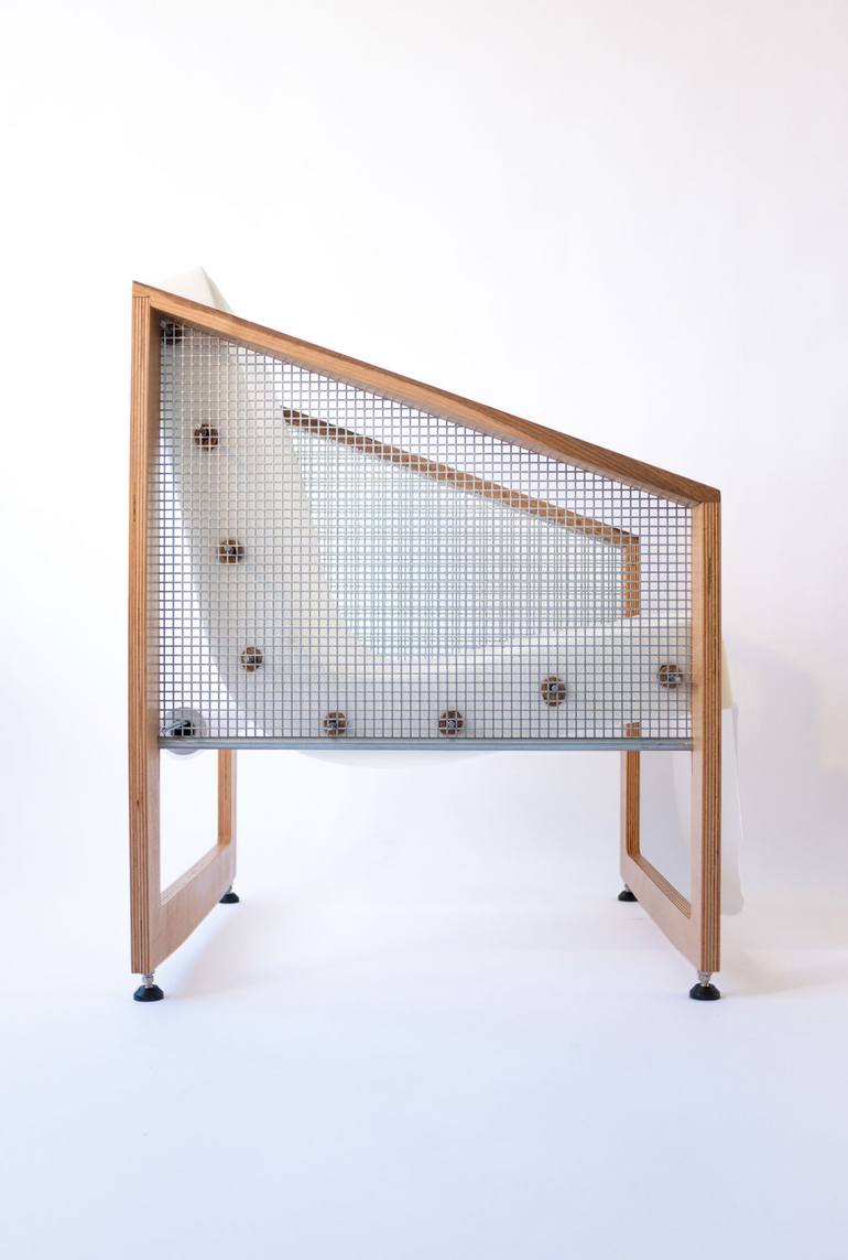 "Written letters never sent now just crumpled paper on the floor one still smooth will one day arrive and you will crumple it with your body" Frame: walnut / plywood combination frame, with squared perforated metal sheet and height adjustable feet Seat: 150mm thick foam Finishing Surface:replacea...