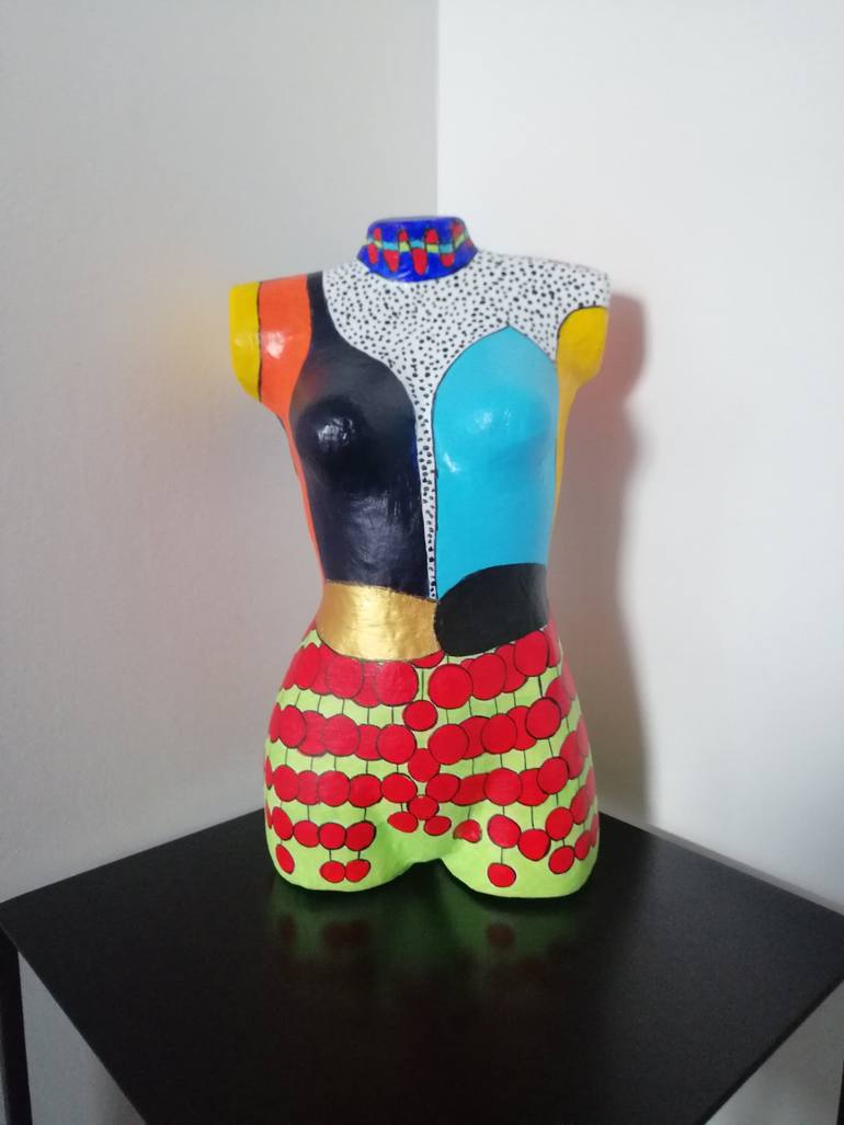 Unique sculpture, signed, 2023 Modeling of paper-based clay, acrylic painting & ink, satin varnish finish. Solid structure Certificate of Authenticity