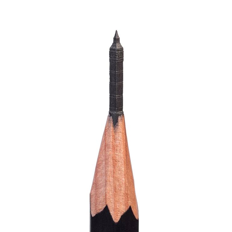 BIG BEN or Elizabeth Tower / #197-2019 original graphite micro-sculpture on the tip of a pencil by artist Salavat Fidai the sculpture size 2x10mm pencil size 8x170mm The sculpture will be packed and shipped in a wooden protective box (pencil case) A certificate of authenticity with the author's s...