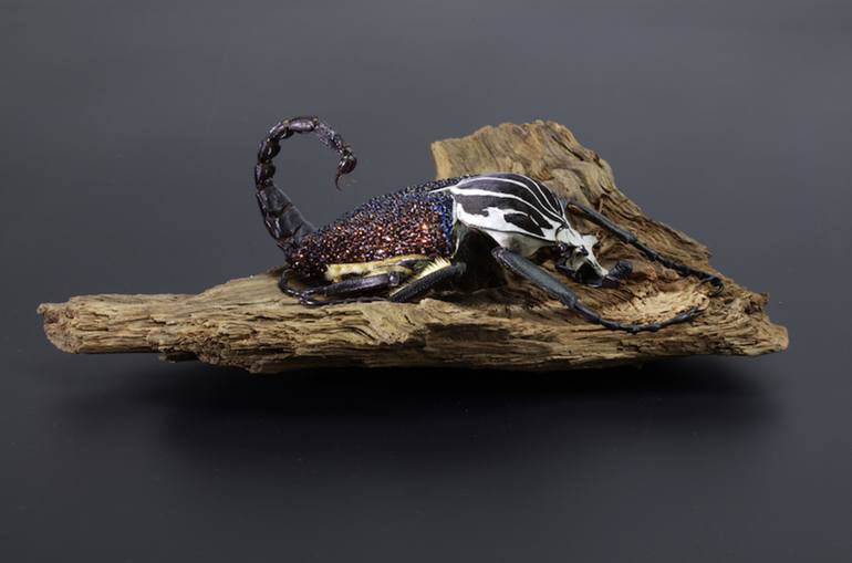 Major Beetle with claws and sting - 15.000 Swarovski crystals in earth-like colors The Grace of the Unknown “ is an art project by German artist MARINA DELLA PREDA. The artist created various creature sculptures by combining elements of different formerly living animals and thereby creating a fasc...