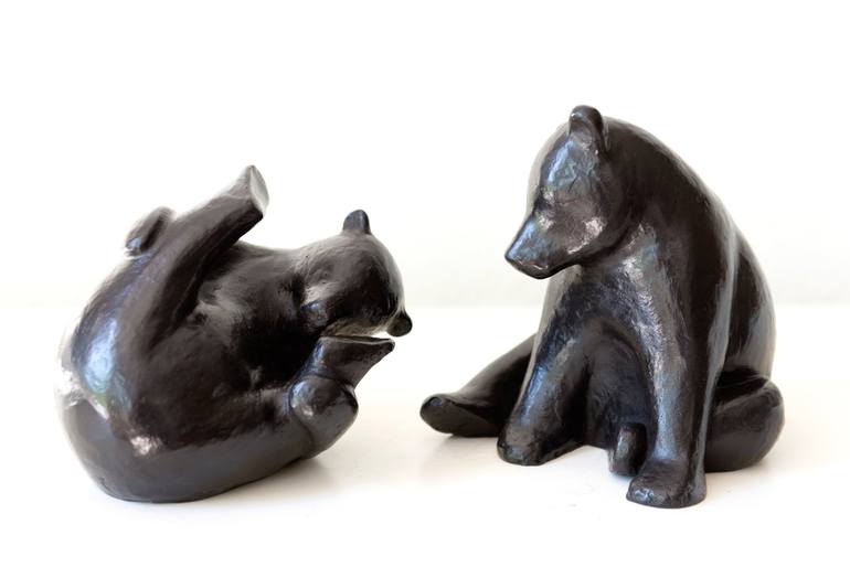 Animals have innate fair rules when they play, they are such amazing creatures..The bears are made in bronze, and patinated in black. They remind us that we have to remember to play :) Each bear by itself measures 20x20x20 cm