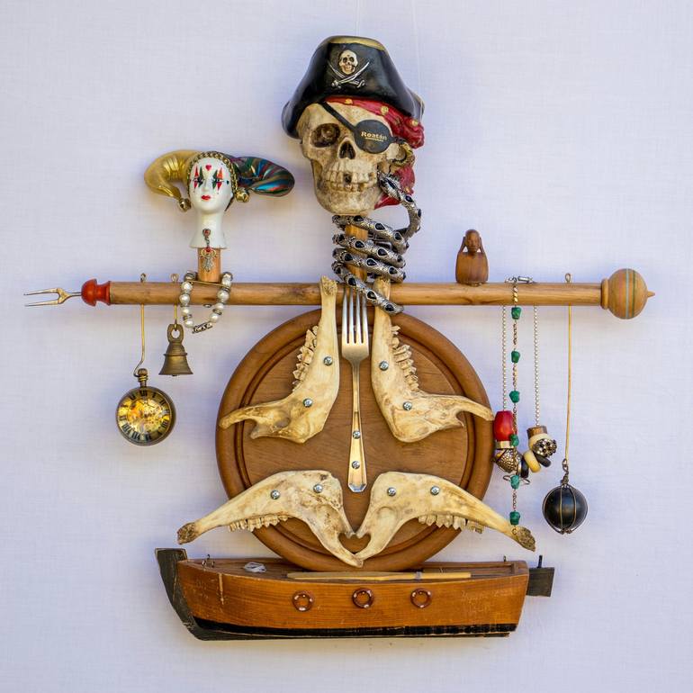 This is an assblage sculpture made from found objects. Inspired by Pirates of Caribbean and the joker movies , I have added the maasai sculpture just to imagine if maasai people are involved in piracy.